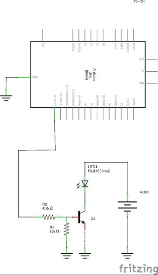トランジスタのベースには、4.7KΩと10kΩの抵抗を入れました。スイッチングで使用しますのでベースに十分電流を流し、